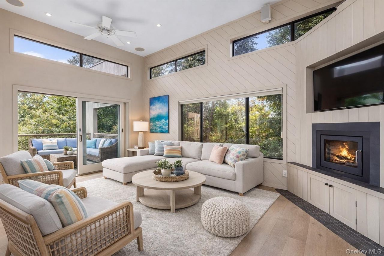 Welcome to Pines Living with Proven Income Potential. Private and thoughtfully designed, this exceptional 5-bedroom, 4-bath Fire Island Pines retreat offers the perfect blend of luxury, space, and income potential. Ideally located just moments from the harbor, beach, and Pines' vibrant dining and nightlife, the home is set back from the boardwalk, creating a rare sense of privacy and seclusion.Spanning multiple levels, the home features a bright and open upper-level living space with sweeping Great South Bay views, a spacious living room, and a dining area accommodating up to 12 guests. The modern kitchen is fully equipped with updated appliances and designed for effortless entertaining. Multiple decks provide seamless indoor-outdoor living, including a front deck with bay views and a private rear deck overlooking the pool.The property offers five well-appointed bedrooms, including three en-suite bedrooms with king and queen layouts, plus additional guest accommodations providing flexibility and comfort for larger groups. A separate-entry pool-level suite adds an extra layer of privacy ideal for guests.Outdoor living is centered around a heated saltwater pool surrounded by an oversized deck, lounge areas, and an outdoor shower-perfect for relaxing or entertaining after a day at the beach.Additional features include central air conditioning, Sonos sound system throughout, high-speed internet, and a strong history of seasonal rental demand. A rare opportunity to own a turnkey property in one of Fire Island Pines' most desirable and private settings.